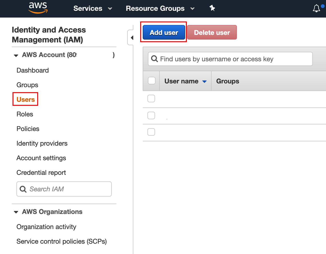 AWS CLI에서 사용하기 위해서 사용할 IAM user를 생성하기 위해서 다음 과정을 따라갑니다.