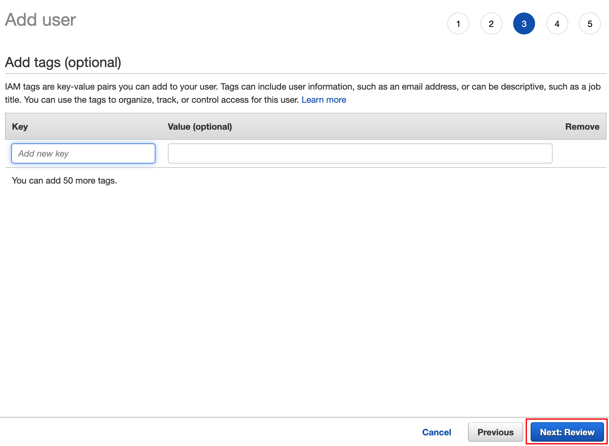 IAM user에 tag를 붙일 수도 있습니다. 나중에 구분하는 구분자이기 때문에 원하시는 분은 넣어주셔도 됩니다.