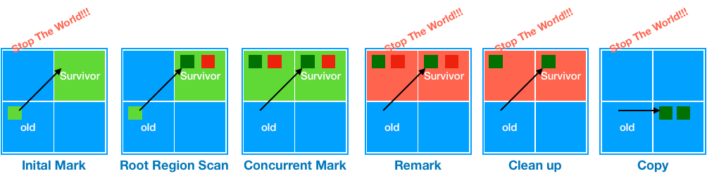 - Verify "Concurrent Mark" step and identify the objects that will finally survive. In this step, a snapshot-at-the-beginning (SATB) algorithm is used.