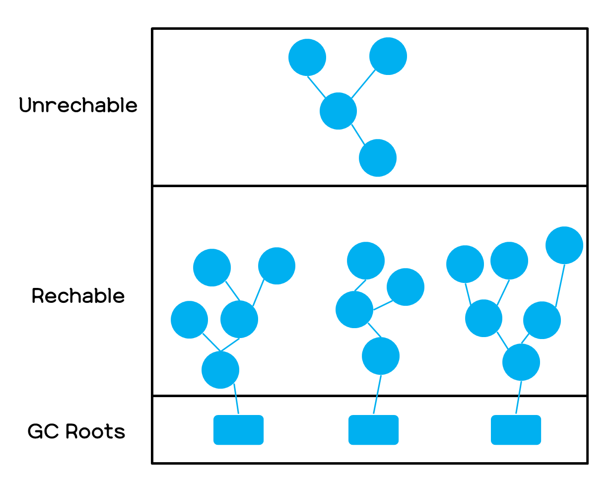 If an object have a valid reference from GC Roots, it is called Reachable, otherwise Unreachable.