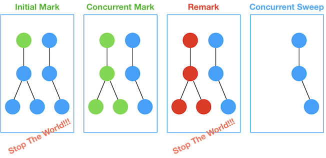 CMS GC : Initial Mark -> Concurrent Mark -> Remark -> Concurrent Sweep